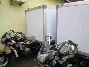 box fiber motor roda tiga ini, mulai dikenal masyarakat beberapa tahun belakangan, telah di manfaatkan berbagai kalangan pribadi atau industri, cukup lincah memasuki gang-gang sempit. dengan kelebihannya sehingga kamipun ber inovasi untuk di pasangkan box fiberglass, yang di gunakan untuk keperluan pendistribusian bahan pangan yang memerlukan suhu sejuk ataupun beku, misal sayur, buah-buahan, daging, es cream, bahkan vacsin..